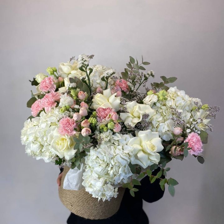 Упаковка подбирается под погоду и повод. Шляпные коробки, корзины, моно-букеты, композиции в вазе. Зимой — термо-чехол и водяная колба у стеблей, летом — охлаждённые боксы и гелевые вкладыши.