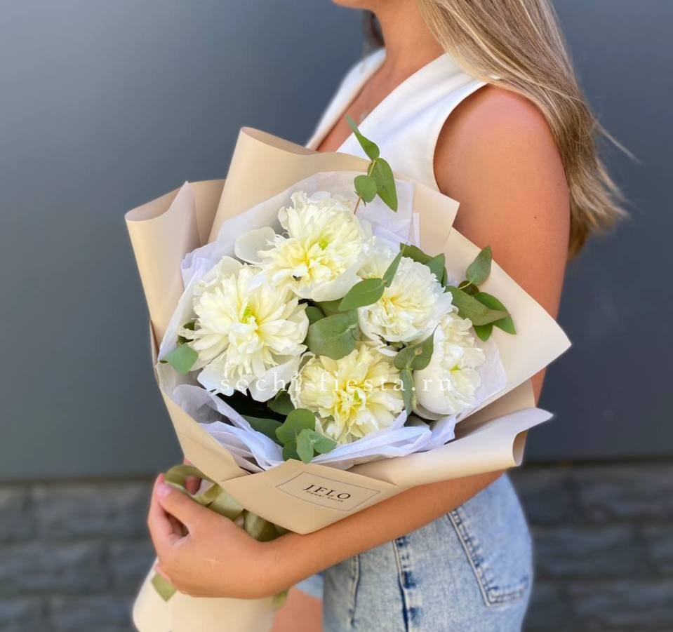 Букет белых пионов