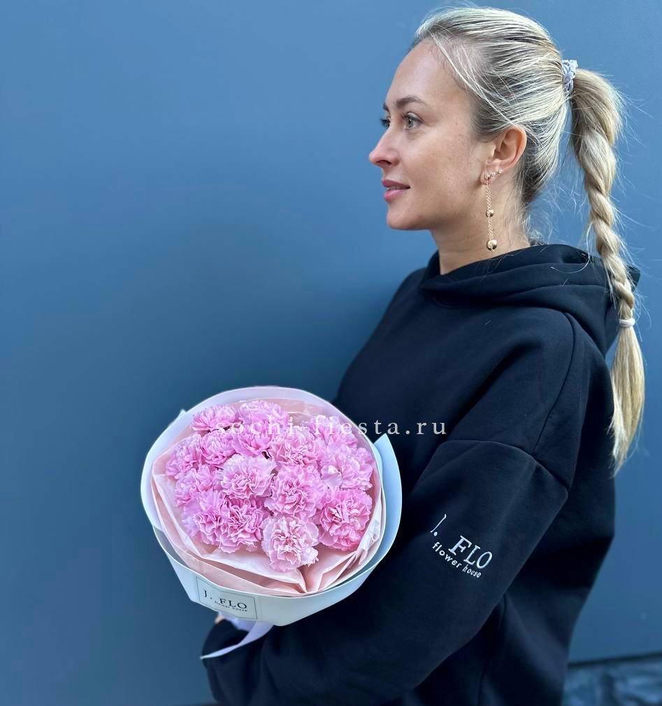 диантусы 15шт, тишью, упаковка, лента.