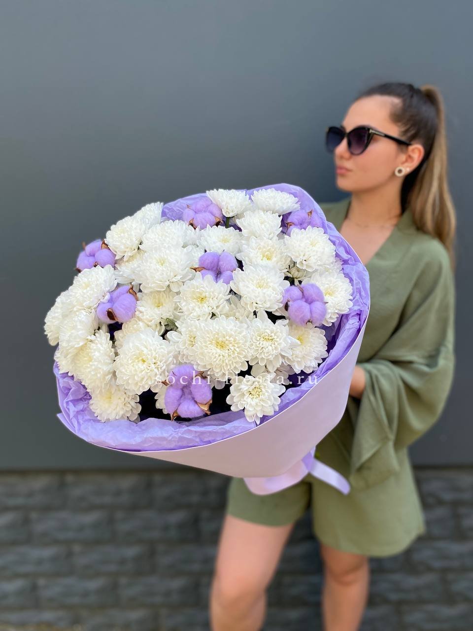Для заказа товара " Букет хризантем и хлопка" с доставкой в Краснодаре нажмите в корзину