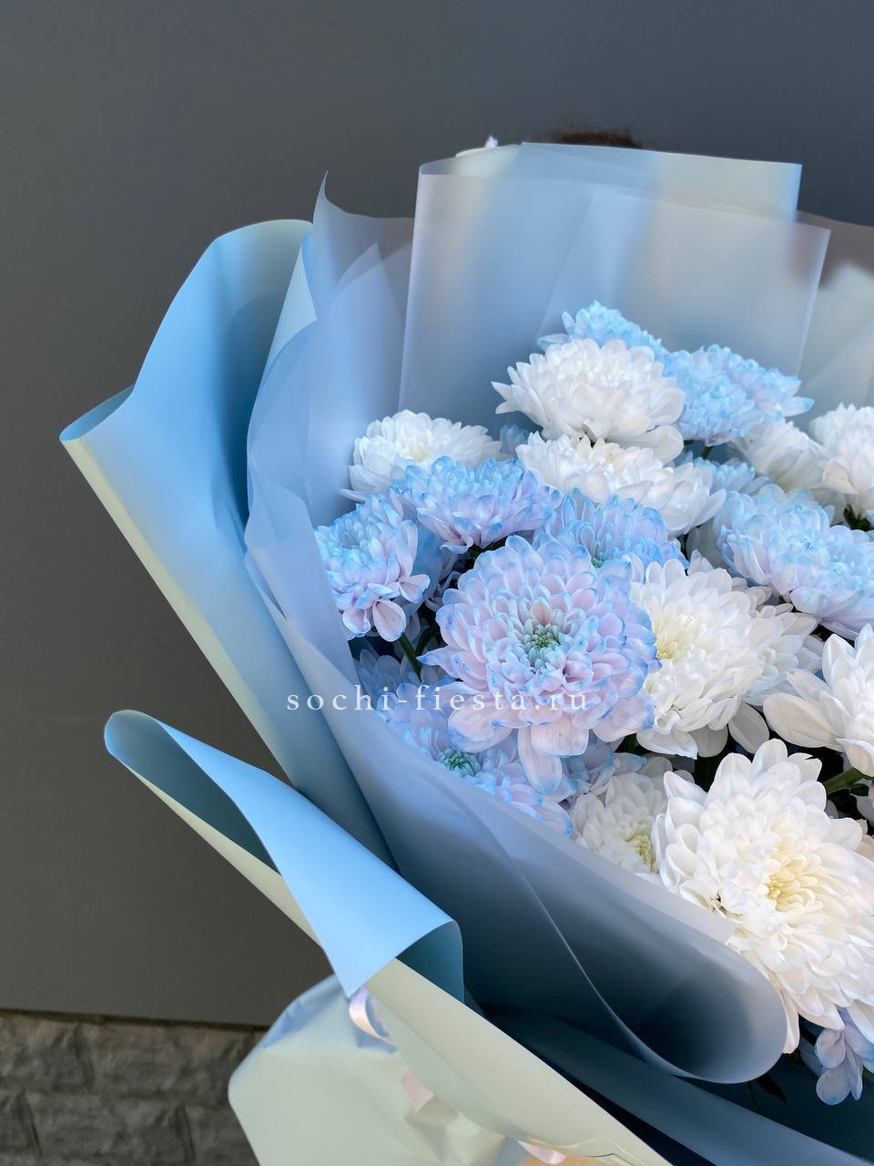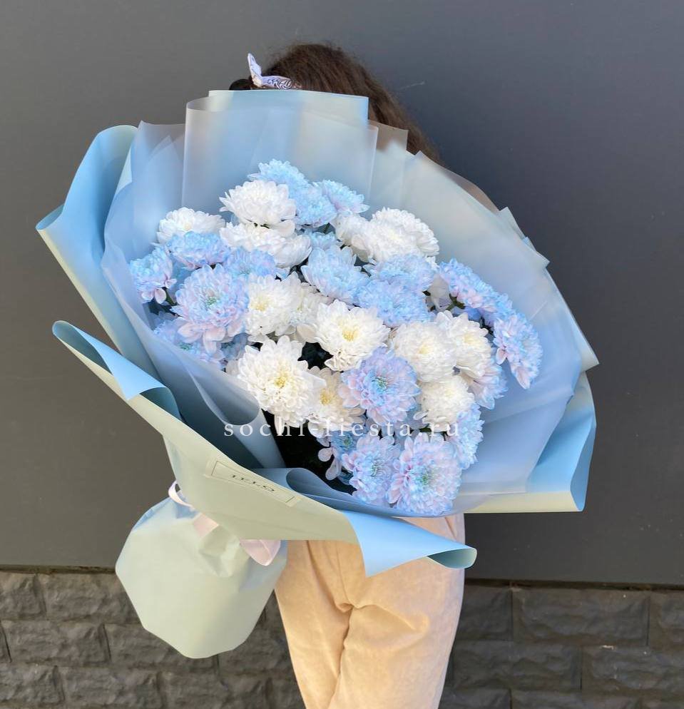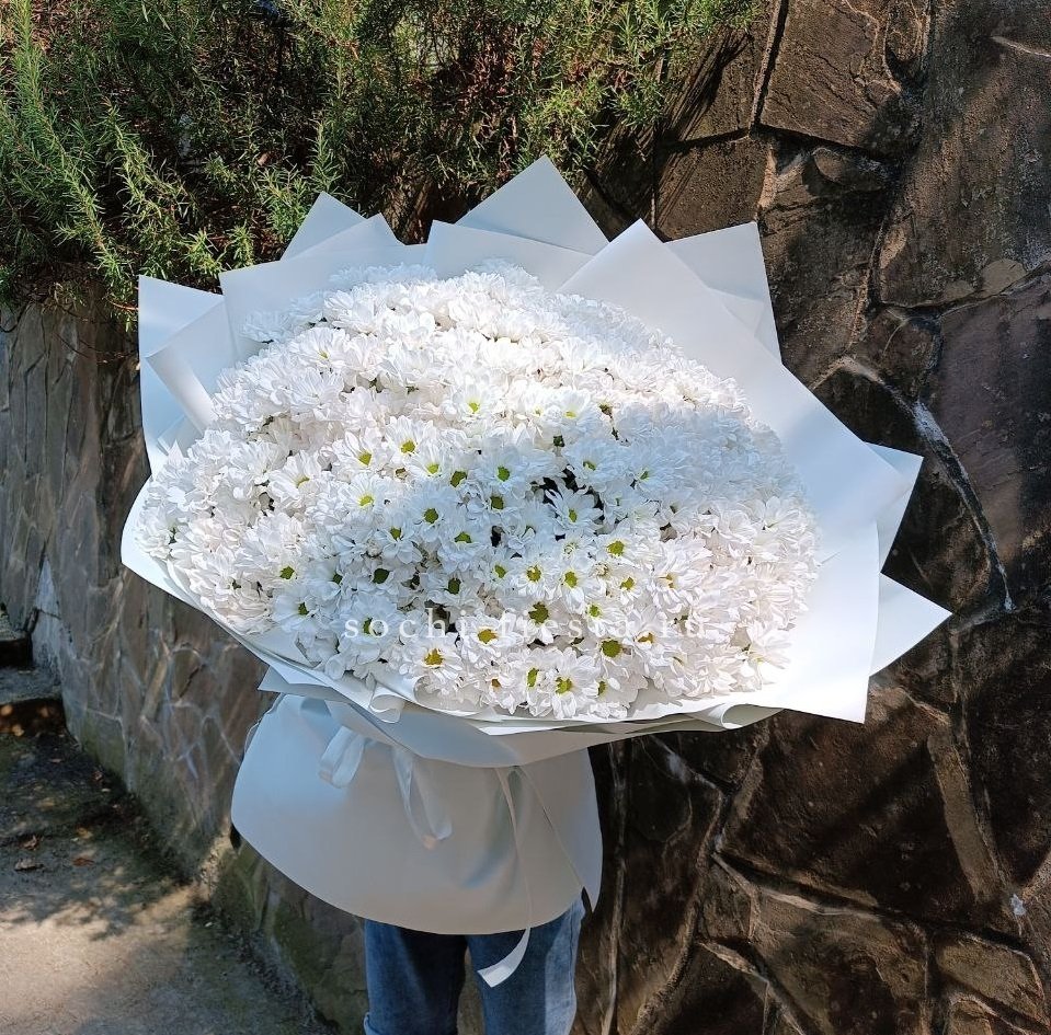 хризантема одноголовая - 9 шт., лента, дизайнерская упаковка.