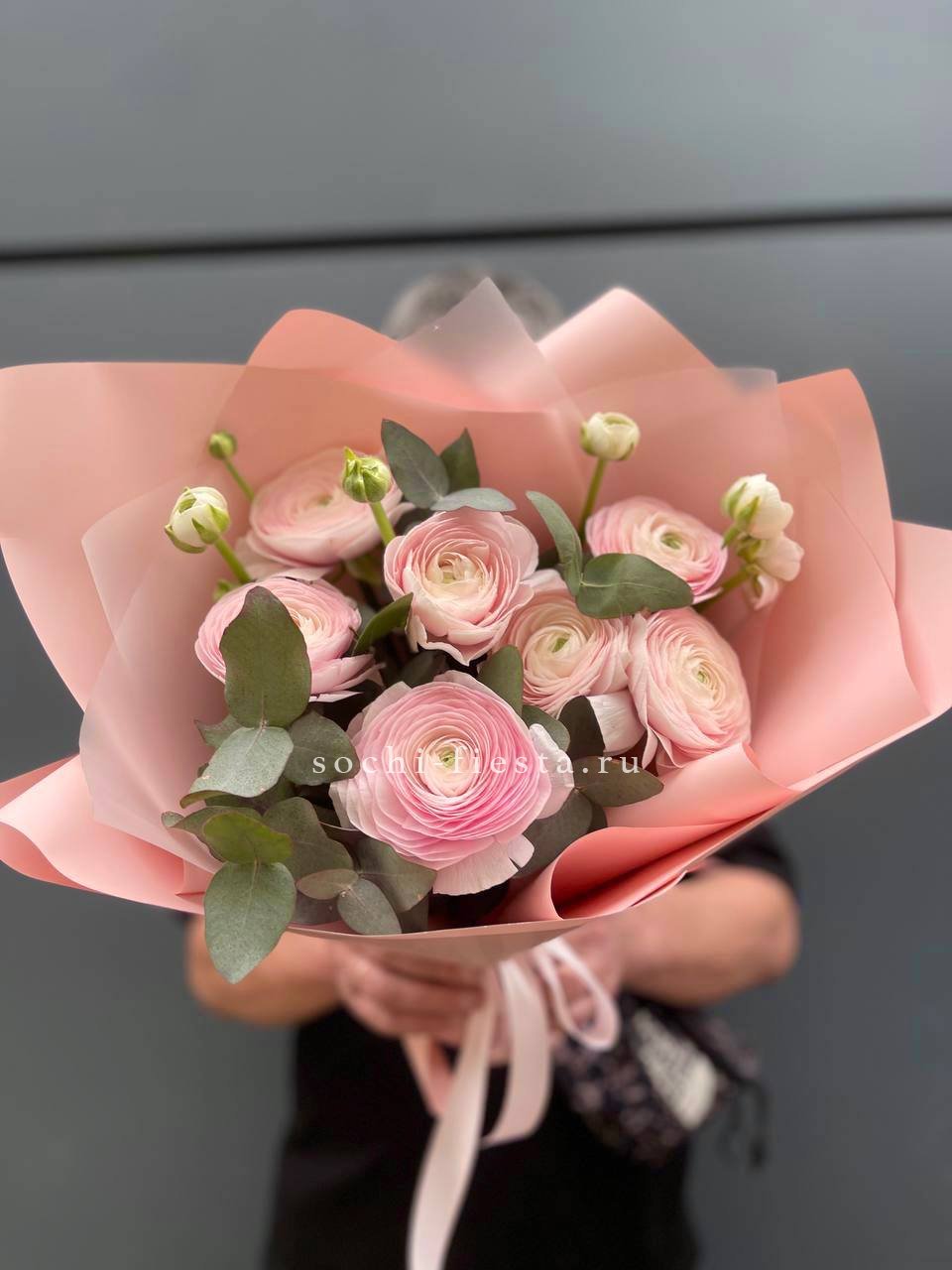 Для заказа товара "Ранункулюсы с эвкалиптом" с доставкой в Краснодаре нажмите в корзину
