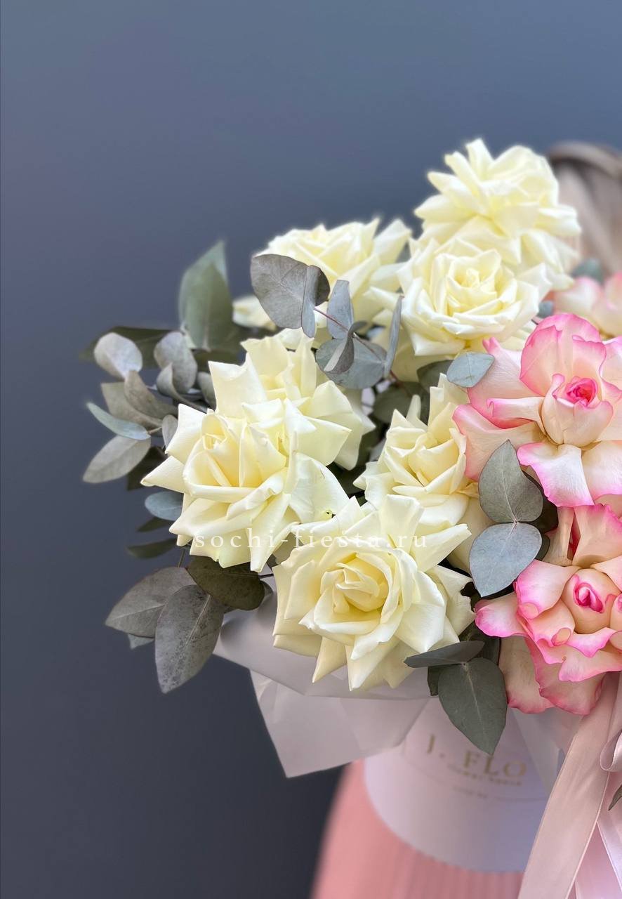 розы в нежных тонах, серый цилиндр D 13, фетр или бумага тишью.