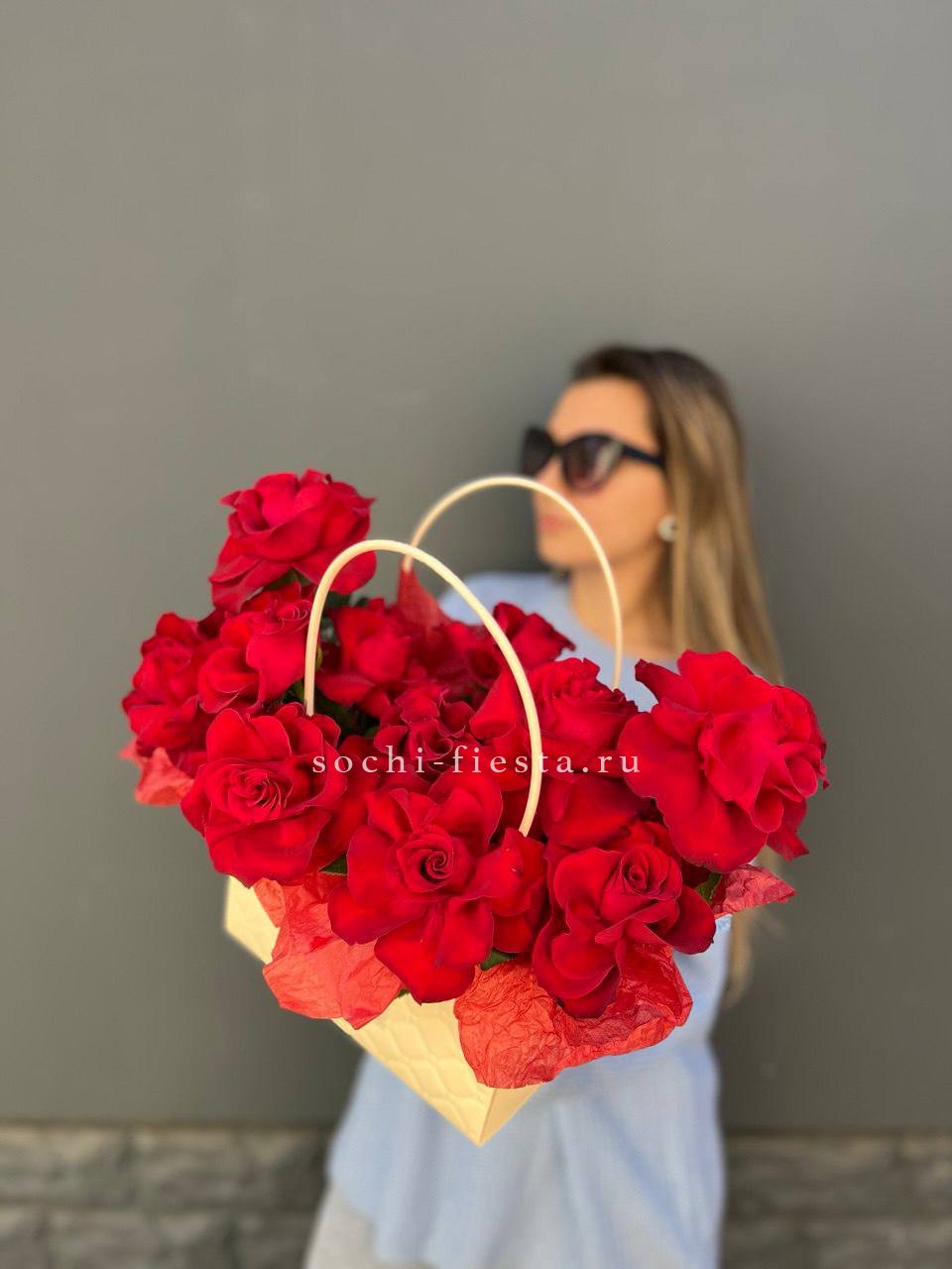 Для заказа товара "Французские розы в сумочке" с доставкой в Краснодаре нажмите в корзину