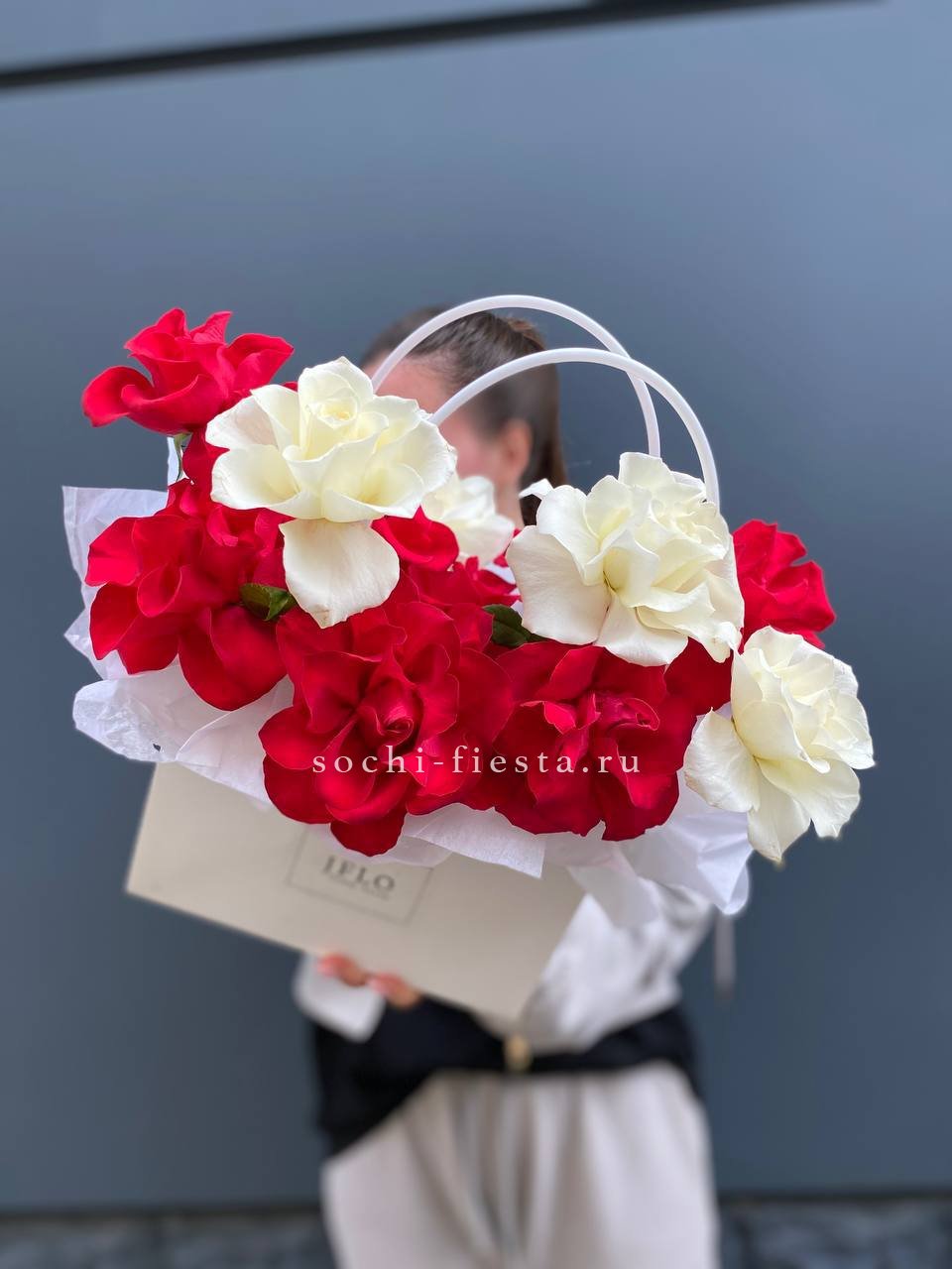Для заказа товара "Сумочка красных и белых роз" с доставкой в Краснодаре нажмите в корзину