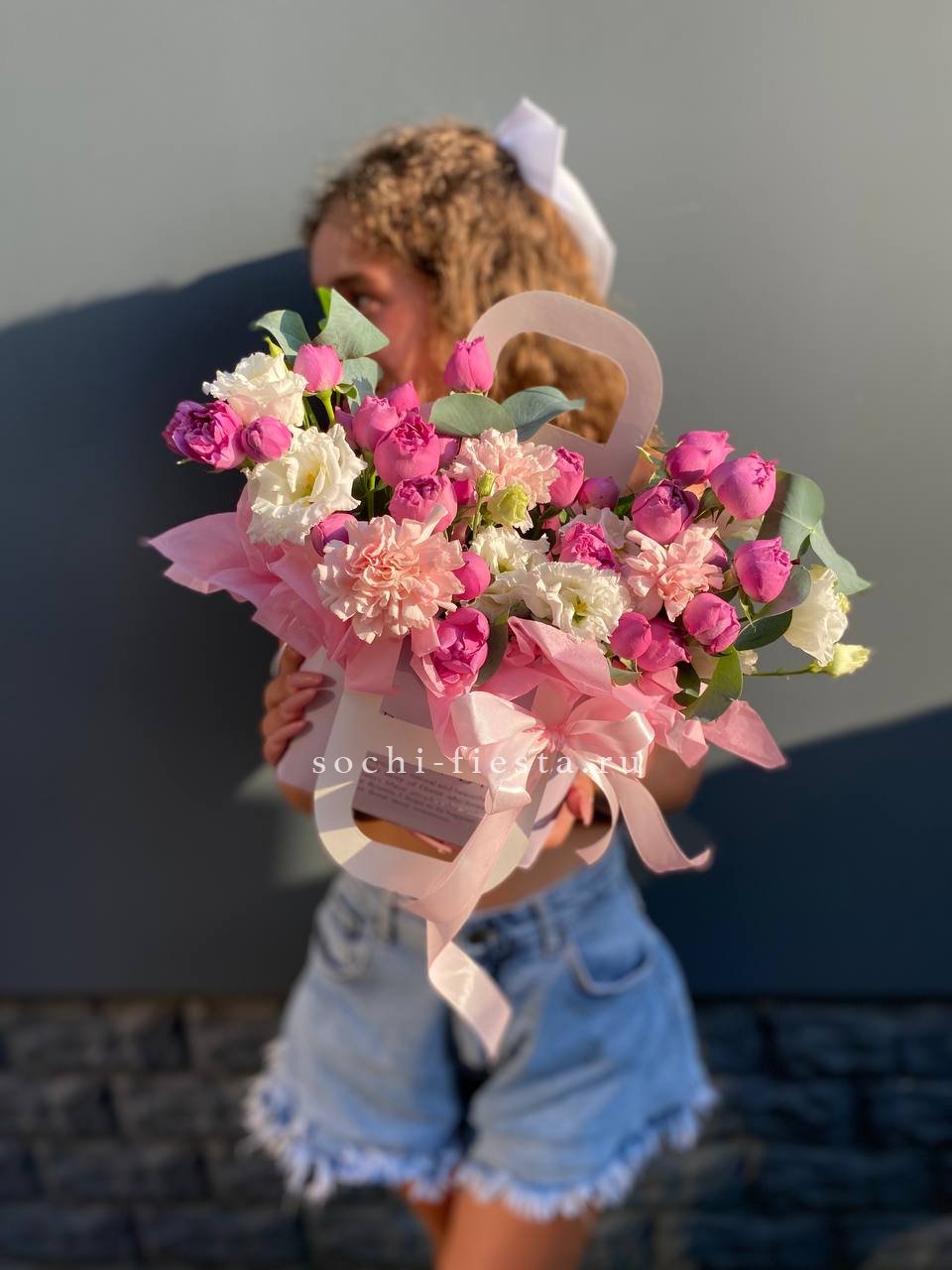 Для заказа товара "Сумочка с кустовой розой и диантусами" с доставкой в Краснодаре нажмите в корзину