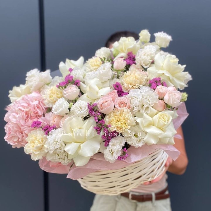Пионовый сезон в Краснодаре — самое активное флористическое время. В мае-июне поставки пионов позволяют создавать объёмные, нарядные корзины по доступным ценам. Флорист предлагает несколько форматов: классическая куполообразная, садовая смешанная, элегантная белая. Именно пионовые корзины собирают наибольший отклик в социальных сетях и приводят новых клиентов.