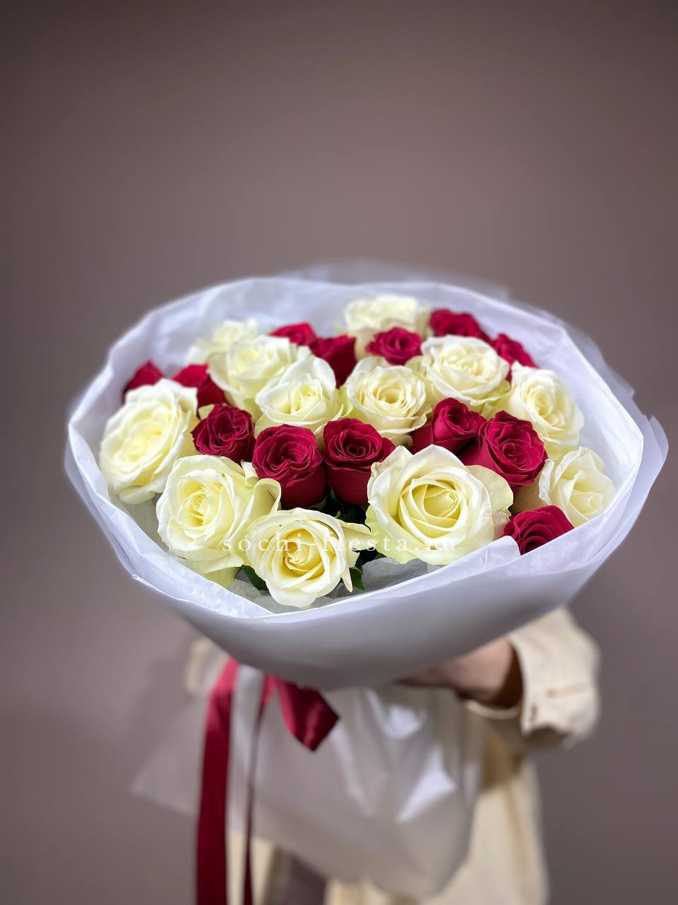 Для заказа товара "Букет их красных и белых 25 роз" с доставкой в Краснодаре нажмите в корзину