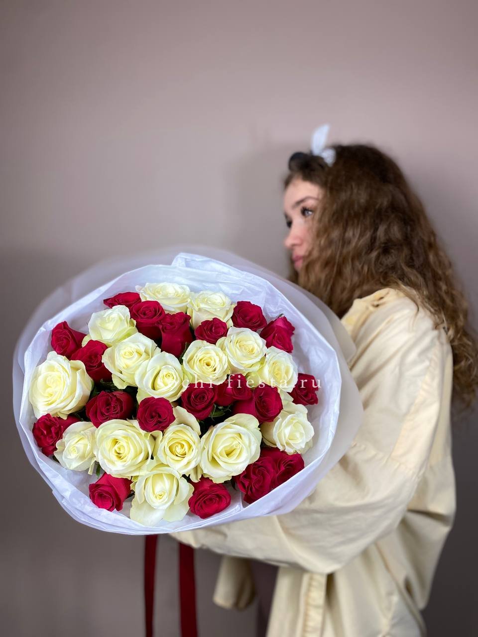 Для заказа товара "Букет из красных белых 35 роз" с доставкой в Краснодаре нажмите в корзину