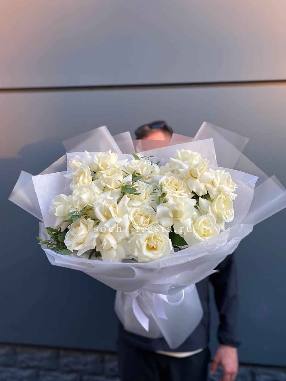 Для заказа товара "Пышный букет из белых роз" с доставкой в Краснодаре нажмите в корзину