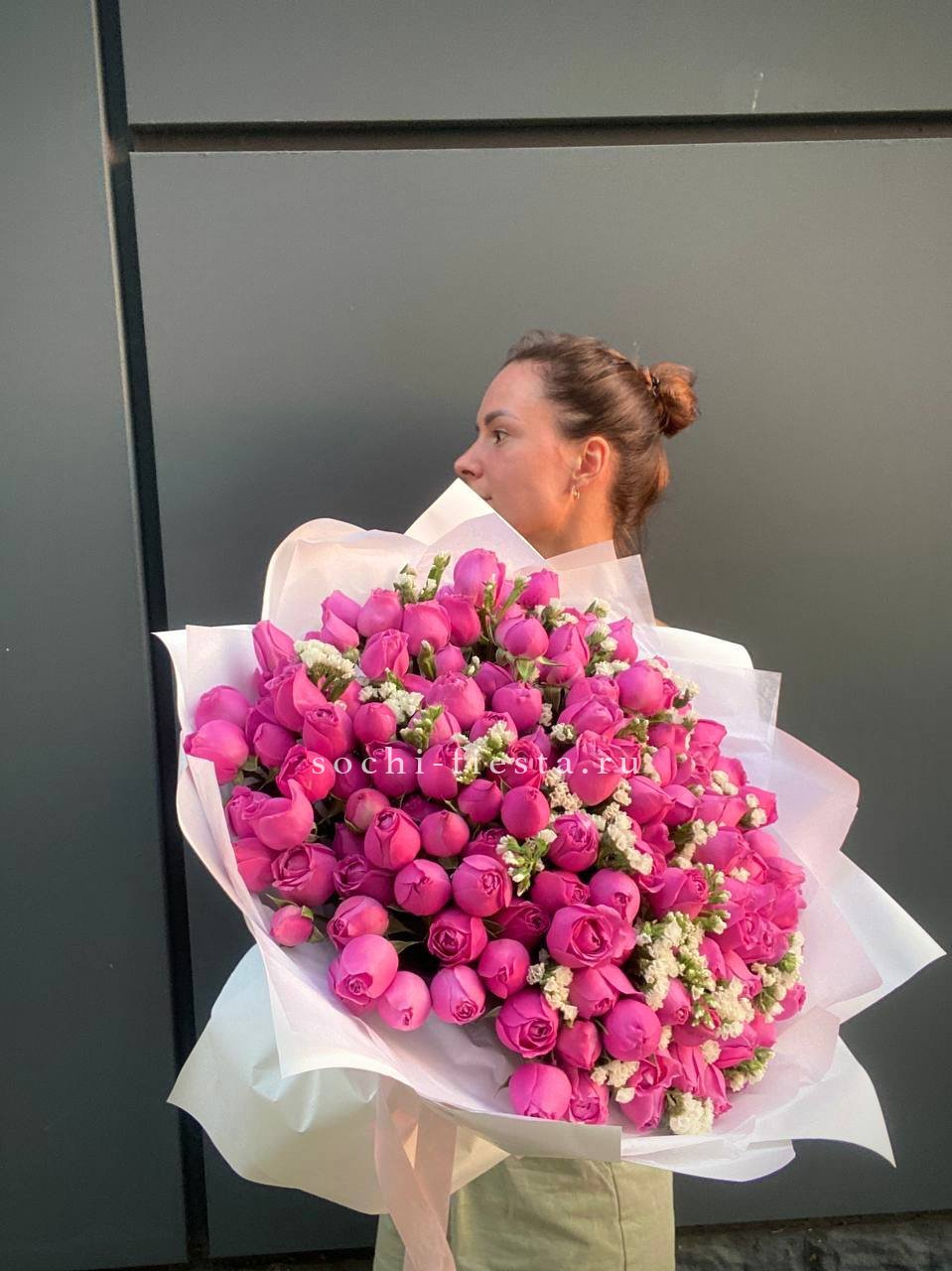 Мы работаем только со свежими цветами — букеты радуют от 7 до 14 дней и дольше при правильном уходе.