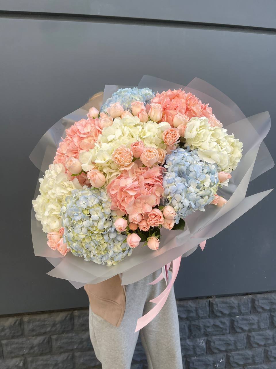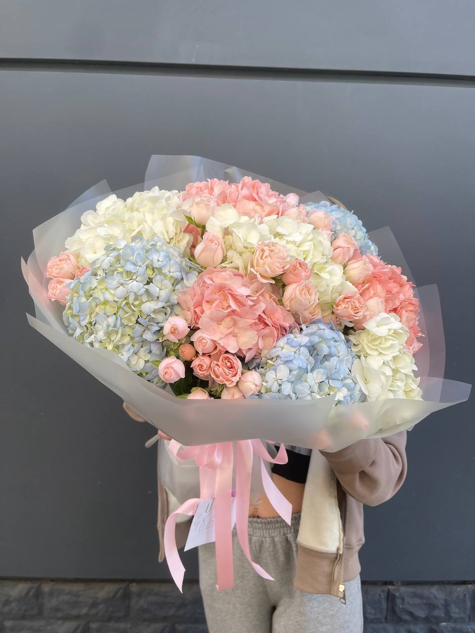 Букет из гортензий и розовых роз