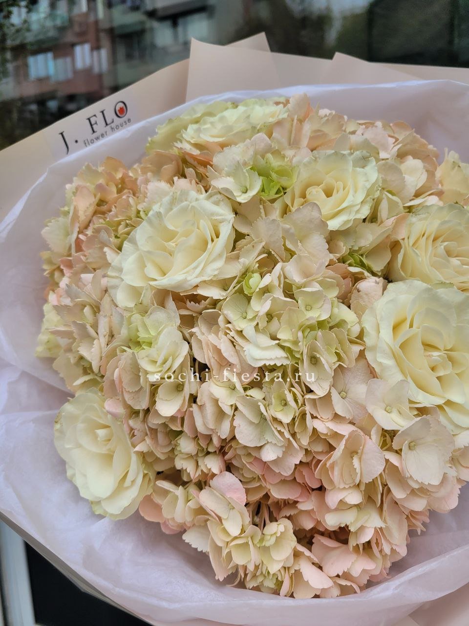 Букет роз, гортензии, гербер