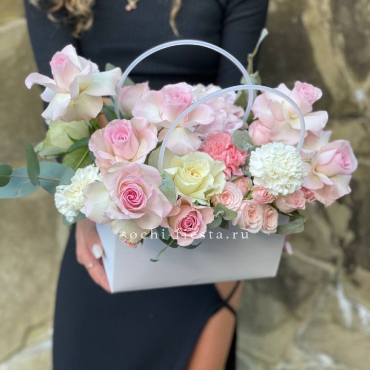 Самые популярные букеты в Краснодаре — это моно-букеты из 15, 25 и 51 розы, шляпные коробки с гипсофилой, композиции с пионами в сезон, свадебные букеты под эскиз, простые авторские миксы с эвкалиптом.