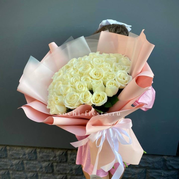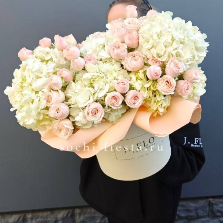 Пионы в сезон (май-июнь) — второй по популярности формат. Sarah Bernhardt, Coral Charm, Bowl of Cream. Моно-букет из 25 пионов или смешанная композиция. В Краснодаре пионы часто заказывают заранее, запас срезки ограничен местной логистикой.