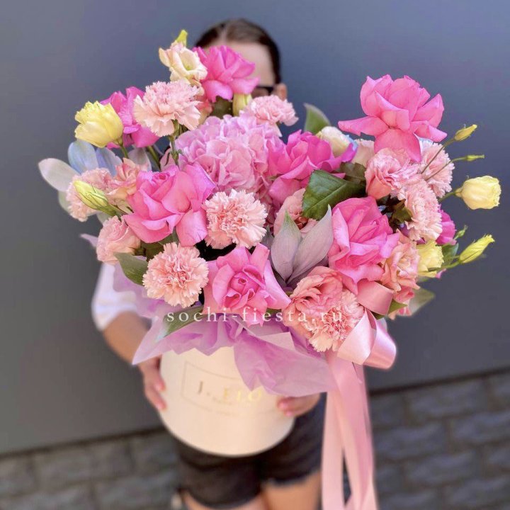 Самые популярные букеты в Краснодаре — это моно-букеты из 15, 25 и 51 розы, шляпные коробки с гипсофилой, композиции с пионами в сезон, свадебные букеты под эскиз, простые авторские миксы с эвкалиптом.